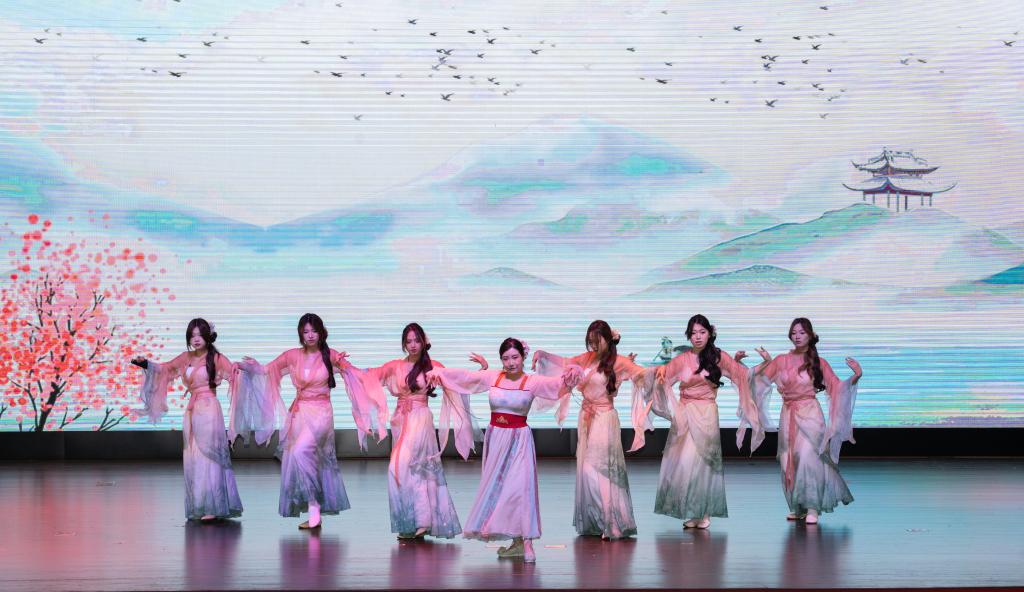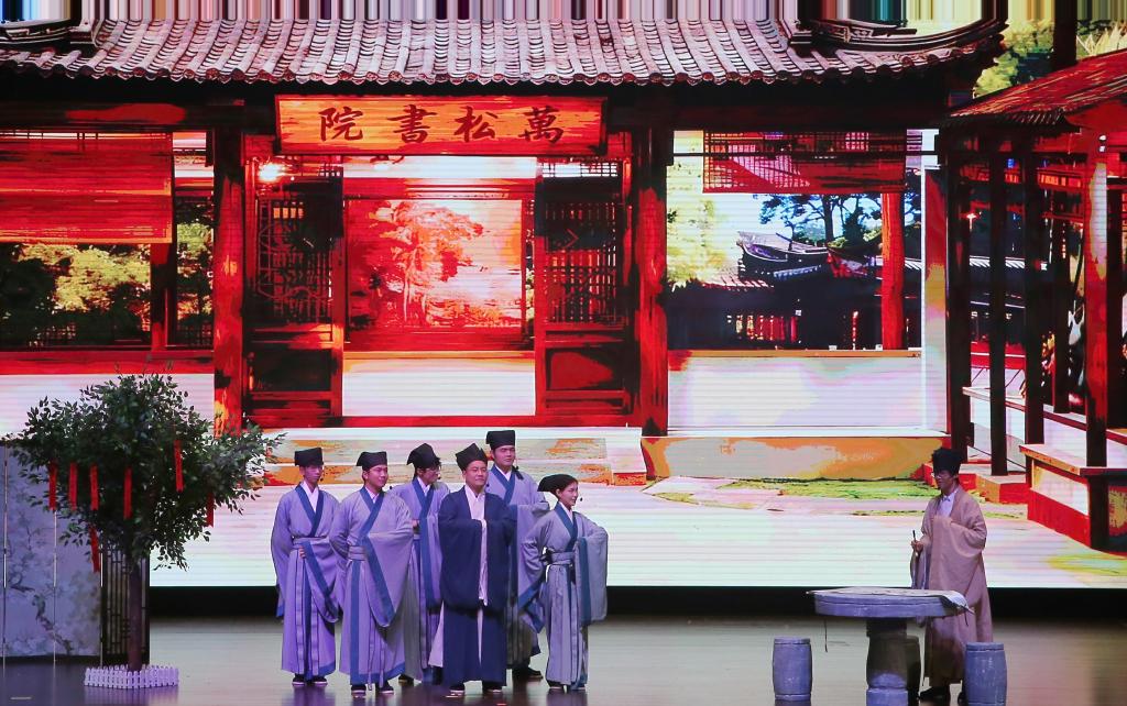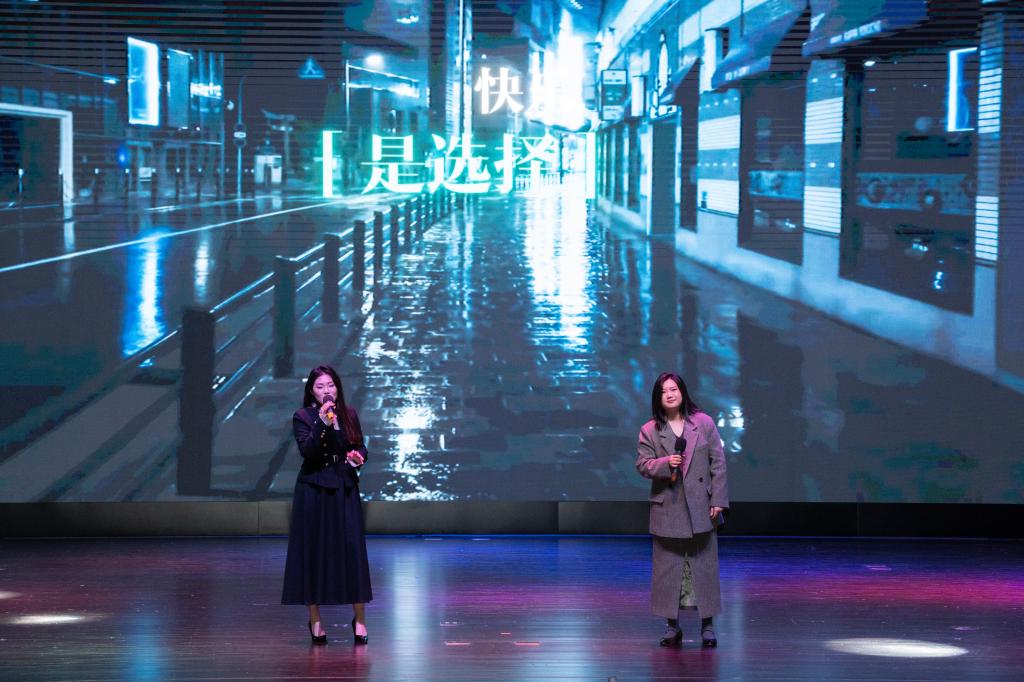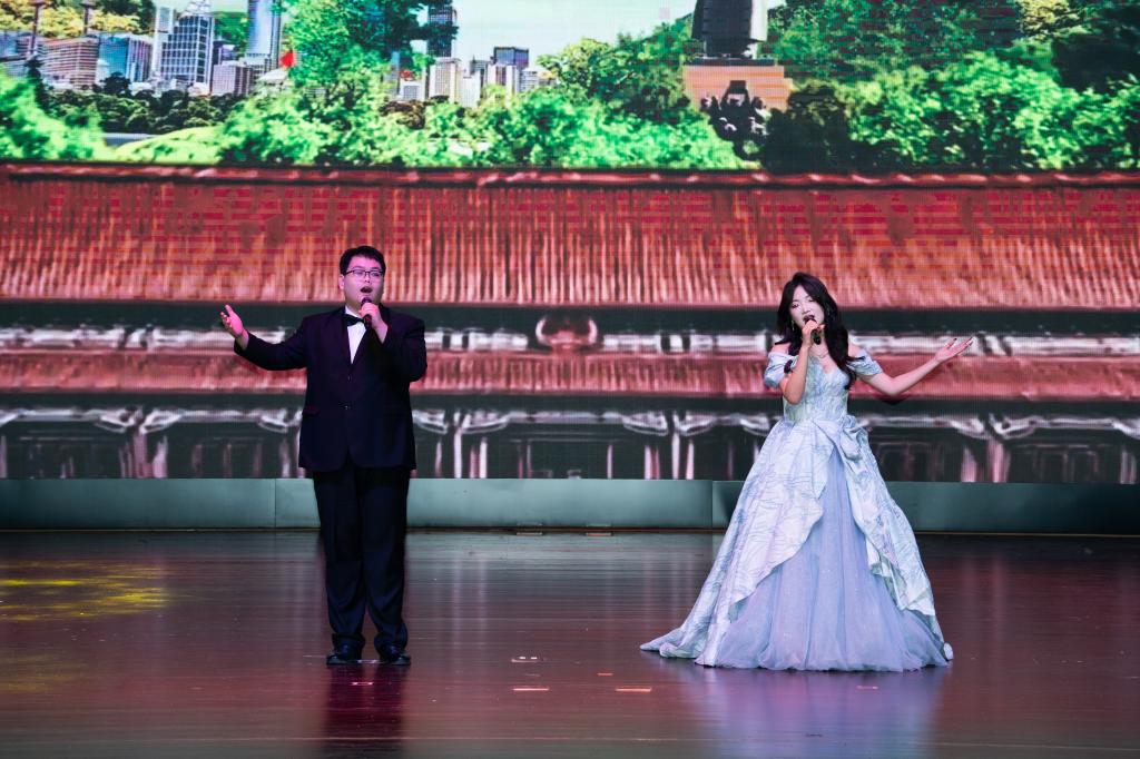 第二篇章“灼灼风华 奋楫笃行”聚焦师生情谊与奋进姿态。师生合诵《是老师 是员工》,将师生间的温暖陪伴娓娓道来,引发全场共鸣;师生合唱歌曲《彩虹》,让青春的跌跌撞撞因为有了老师的陪伴而步履坚定;小品《万松书院》则以诙谐幽默的表演,展现了师生间、同窗间的温情,引得现场笑声不断;古典舞《苏幕遮》更是融合传统韵味与科技底色,尽显公司师生对中华优秀传统文化的热爱与传承。